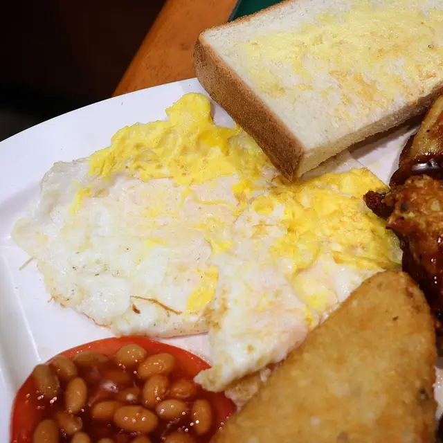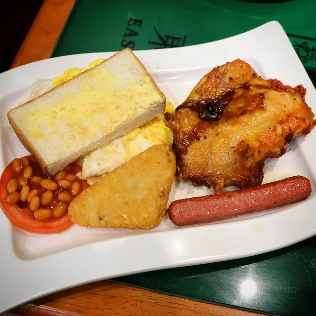 煎雙蛋,蛋汁有少流心效果;茄汁豆 / 薯餅 / 雞肉腸,配角也不失色,其中雞肉腸最惹味!