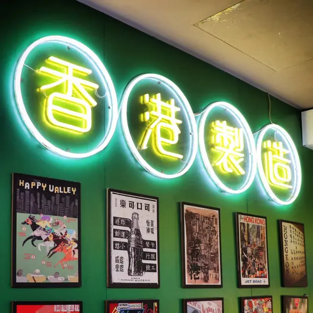 餐廳裝潢以懷舊香港為題,隨處可見舊式燈牌及復古海報等裝飾。