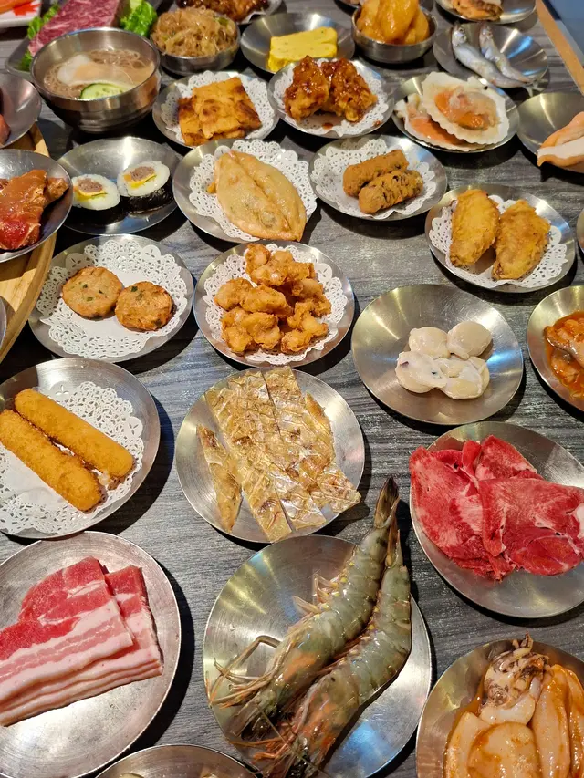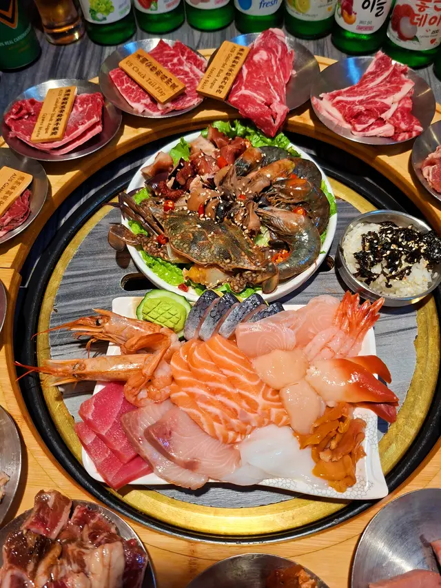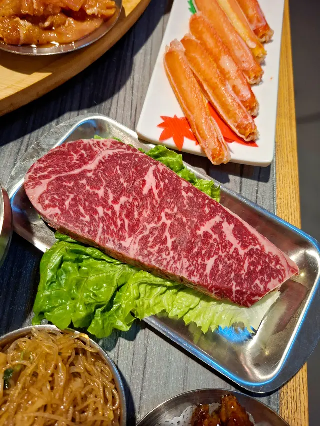 成枱都係一碟碟已經好吸引!一次過放咗幾十款唔同小碟係枱上,非常之豐富,打卡一流。肉類選擇好多,澳洲草飼黑安格斯封門柳、穀飼黑安格斯牛板腱、牛頸脊 等等,燒烤後入口即化,肉質口感鮮嫩,油脂恰到好處