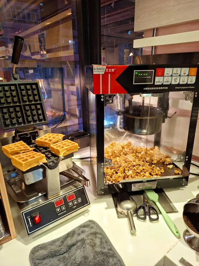 除咗肉類-雞、牛、豬及海鮮類外,仲設有自助蔬菜櫃、自助飲品、多款甜品,連格仔餅、爆谷機同自助軟雪糕機都有,真係大人細路都鍾意