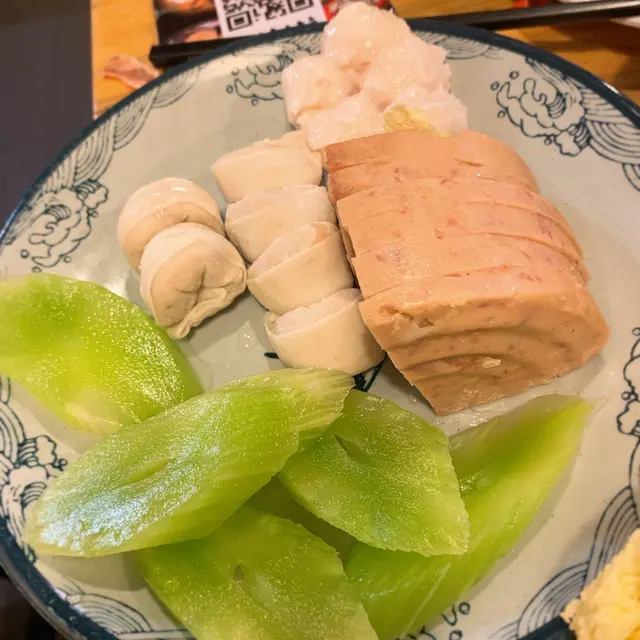 食完海鮮就來其他配料,火鍋配料可選六款,牛肉色澤光鮮,食落有口感,加埋午餐肉,魚皮鉸,蔬菜就點了萵筍娃娃菜清一清口味