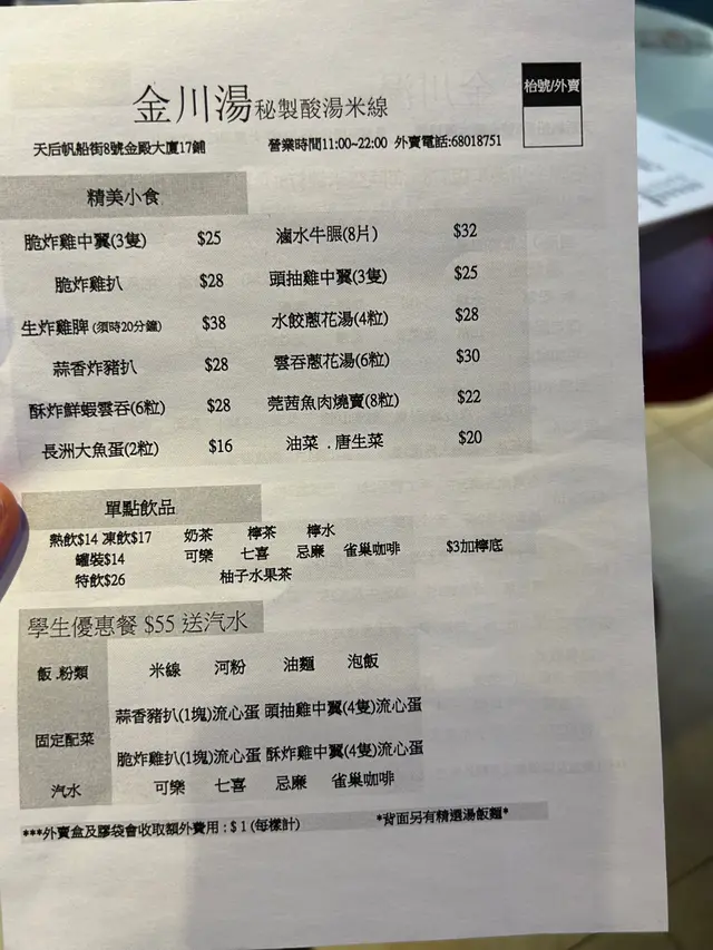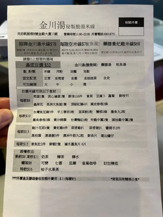 真材實料 主打無味精湯底👍🏻 SinYeeLaiLevel 32023-09-09304 views Follow 試下新開餐廳,聽聞老闆係星級酒店的大廚,自己創業。老闆娘做樓面,熱情好客,兩公婆拍住上💪🏻叫左兩碗麵,三碟小食,愛飲湯的我無加飲品,要試個原汁原味,一啖湯一啖麵😆足料,好食👍🏻$78湯底飲完喉嚨幾舒服😳$68雞翼1雞排牛脤兩碗麵好足料!藥膳湯底真係當湯咁飲,老闆娘見我咁中意,仲專登叫老闆加湯比我,多謝你咁細心🥰小食特別推介:雞翼 - 好入味👍🏻雞排 - 外脆內軟香港地難得的無味精湯底,好多食完會口乾,依間食完竟然有喉嚨舒服的感覺🤣 證明主打無味精係真既希望你地keep到水準,繼續用心做落去💪🏻The above review is the personal opinion of a user which does not represent OpenRice's point of view.1Share真材實料 主打無味精湯底👍🏻 金川湯秘制酸湯米綫 https://s.openrice.com/QrKT0oJDC00Report Post Ratings4Taste3Decor5Service4Hygiene4ValueRecommended Dishes藥膳貴妃雞米線$68招牌金川湯米線$78牛脤雞翼雞排Dining MethodDine InType of MealDinner