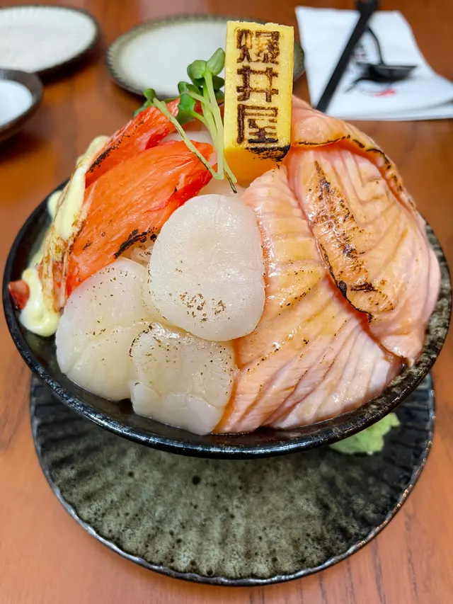 爆丼旅程:先把魚生放在小碟上,才可把魚生飯送進口中,日本米飯香微暖,醋味適中,不愛吃飯的我,大啖大啖食.....😄👍🏻正吖!魚生新鮮,炙燒不過火,味道配搭得宜,蟹柳三條、帶子三片、左口魚三大片、三文魚四片及厚切甜蛋一片,一啖魚生、一啖飯......把整碗爆丼飯K0了😄👍🏻👍🏻👍🏻