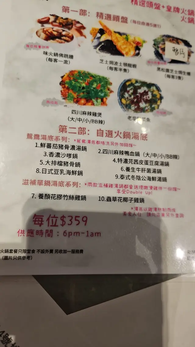 🍲火鍋五部曲 ($359) 加一&部分湯底另計