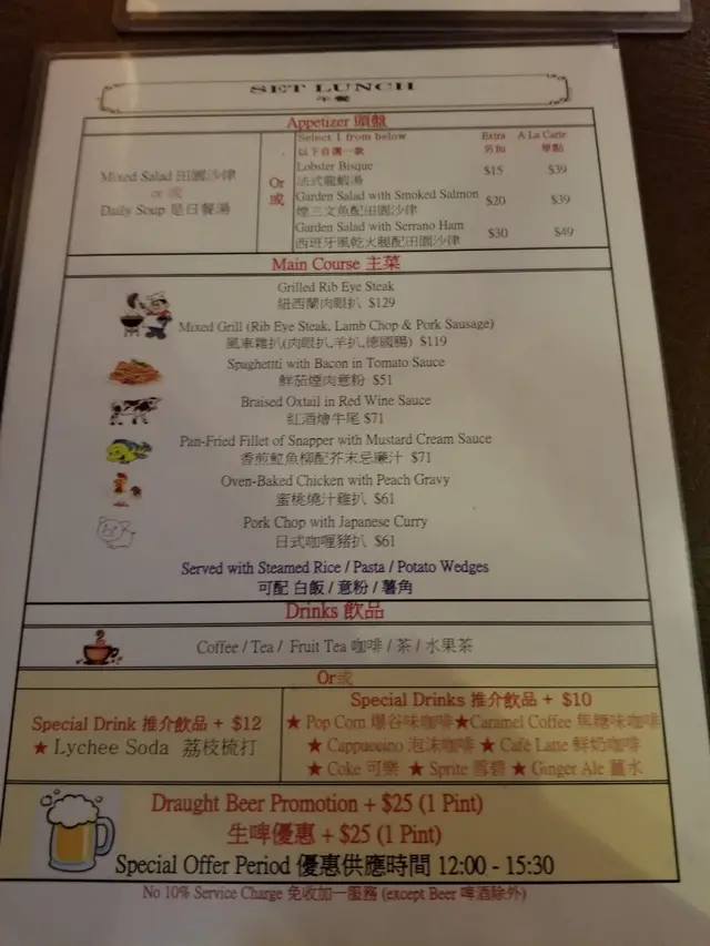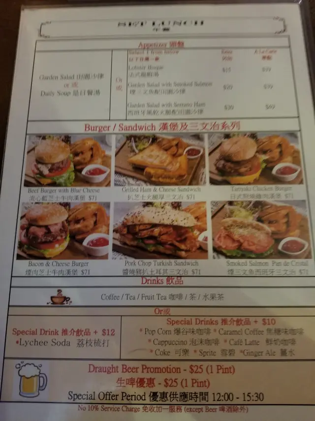 我們二人坐下,職員即遞上餐牌,介紹了人氣非常的日式照燒雞肉漢堡和醬燒豬扒土耳其三文治,我們當然聽取職員介紹,點了這兩個餐,套餐附有餐湯或沙律,還有餐後飲品。