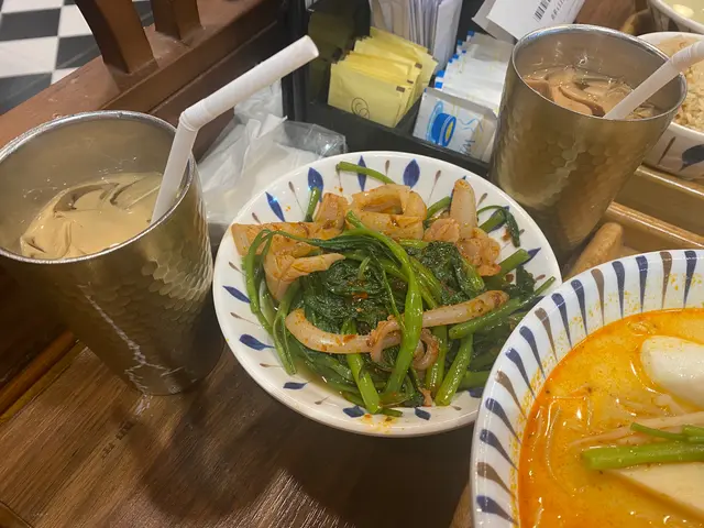 再嚟,嗌左嗰鮮油咖吔多士,可能我哋擺凍左,我就覺得冇咁好食了,但係我朋友係話好食既,不過就唔係好岩我,我覺得中間嗰兩塊牛油太甜有啲漏。then 加20幾蚊加左個魷魚通菜食落幾爽口,不過都係中規中矩,菜炒得唔夠辣,食落冇話好過癮。