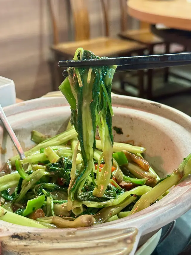 通菜每條都沾滿醬汁,入面好多蝦乾,滿滿的鹹香。通菜爽脆可口,唔想食上湯,這個通菜煲是最佳選擇!