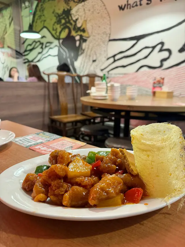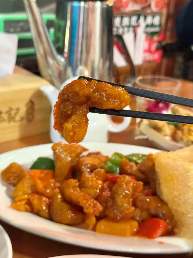 用了梅頭去做的咕嚕肉,一口真的是啖啖肉,酸酸甜甜,配上鮮菠蘿和拔絲的香甜,送飯一流!而且份量十足,一定要點!