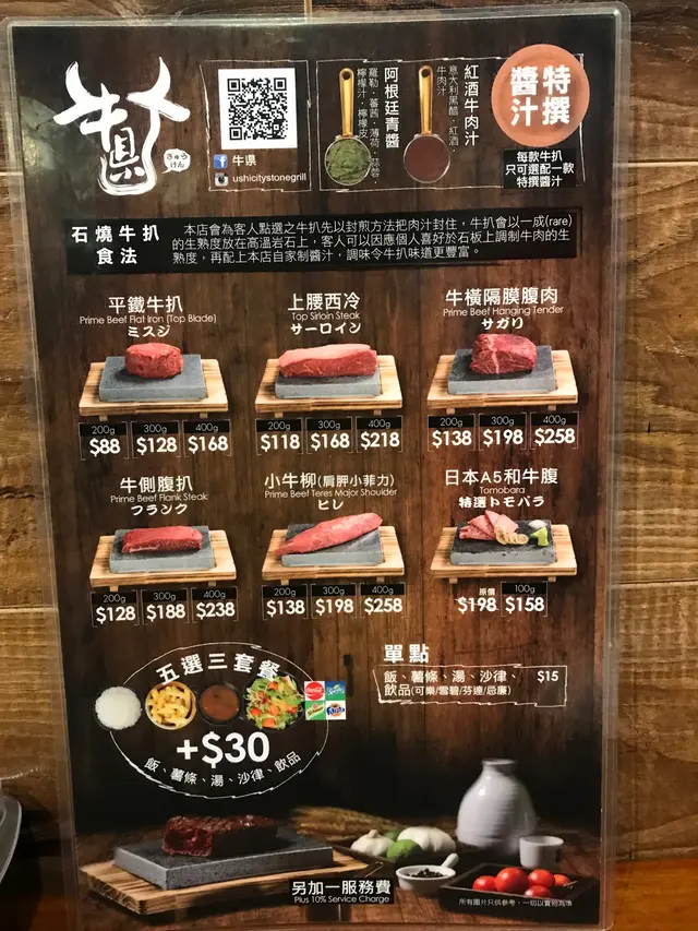 總共有六款牛可以選擇,有平民式的西冷,也有尊貴的A5和牛🤩