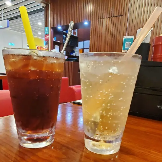 蜜桃梳打特飲:我特別喜歡蜜桃的清香,一邊吃牛肉鍋,一邊吃有汽特飲,感覺很爽。
