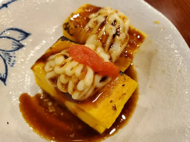 雙色玉子燒:玉子甜度充足,微燻的外層令玉子的味道層次分明,配上忌廉醬更能發揮出玉子的甜味。