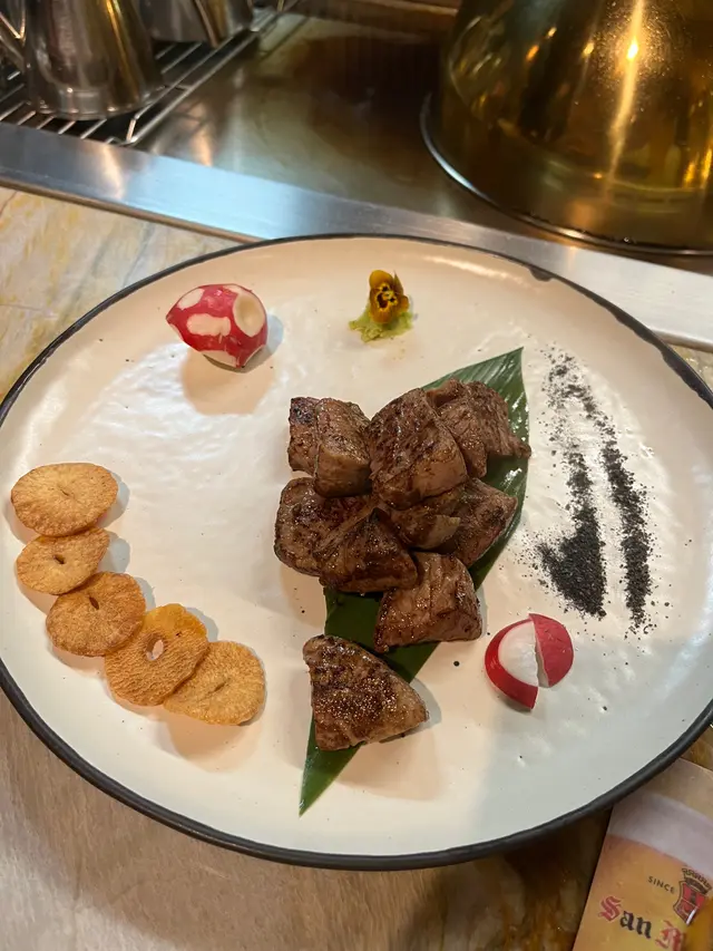至於肉方面,我地叫左牛舌、牛柳粒、羊扒。師傅都好好手勢。因為我地叫5成,整到出黎真係岩岩好,超juicy唔鞋口!每個菜式側邊都希啲精致啲既伴碟,一邊面令賣相令啲,另一方面都提升味道!