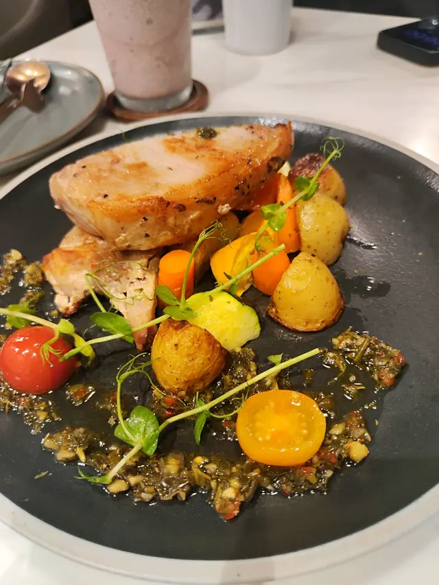 🩷香煎加拿大豬鞍扒伴意大利青瓜、燒薯角與阿根廷青醬
