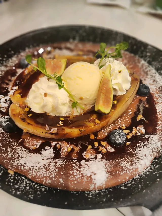 pancake薄薄地,脆脆地,加上香甜嘅脆糖香蕉和朱古力碎,味道真係好夾😻