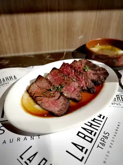 封門柳七成熟,肉質軟嫩,牛味濃郁,搭配鷹嘴豆泥,口感綿滑,味道唔錯。