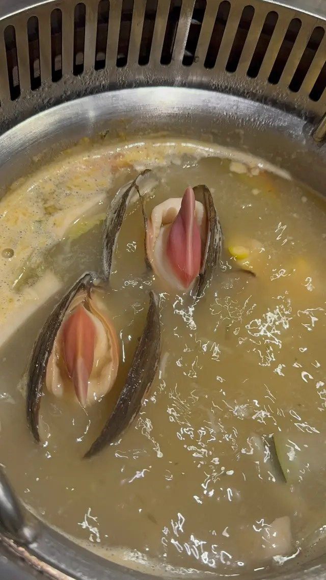湯滾了貝殼打開可以吃,入口爽利完全沒有半粒沙。