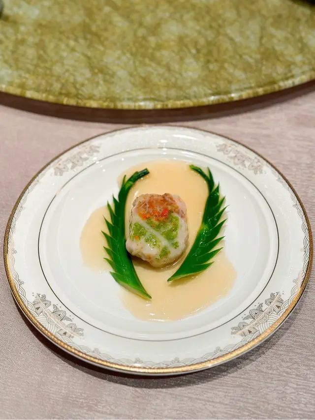 — Beautifully presented and did not disappoint. The braised pomfret is wrapped in a thin caul fat layer which gives it an undeniable aroma and unique texture. The fish had a firm texture, with a tinge of sweetness to it. Other half of the ball is a bouncy prawn filling which was super well seasoned.