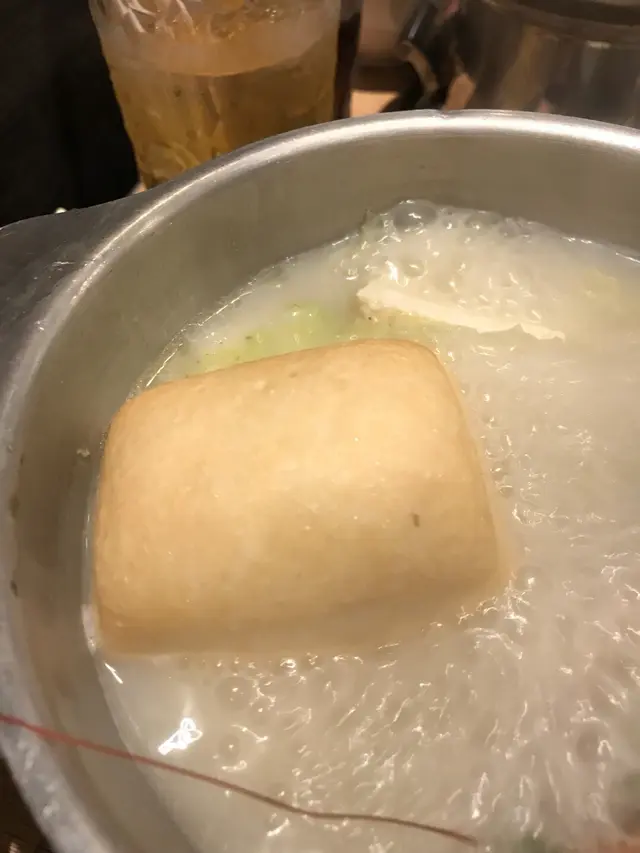 海鮮鍋豬骨豆腐湯夠晒清,餸料都係嗰啲嘢,份量好夠食。有魚腐,wasabi火腿丸,手打肉丸、魚片頭、腐皮、兩粒迷你餃、一碟肥牛、兩片石斑、魷魚、一隻蝦、南瓜、生菜、米線、烏冬、本菇、炸魚皮。