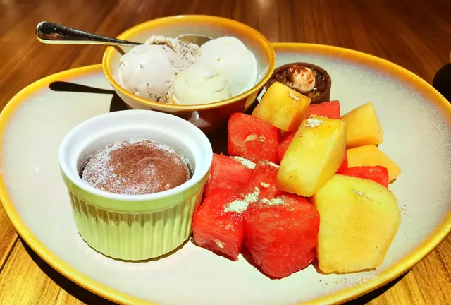 甜品这裏绝对要点讚,种类繁多之余 特别爱吃他们 的冰淇淋。特别喜爱吃他们的意大利gelato包括威士忌 冰淇淋和 伯爵茶冰淇淋,这两款口味在其他餐厅很难吃得到。他们的水果很也很花心思,附上梅子粉 可撒上水果上 增添香味。另外朱古力心太软 也做得很好吃。