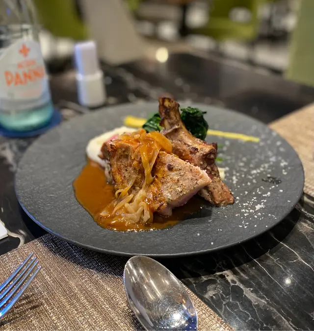 豬肉軟熟,鎖住了肉汁,不需要洋蔥汁也足夠美味。薯蓉配洋蔥汁是一個絕妙的配搭,讓這道菜更加豐富。