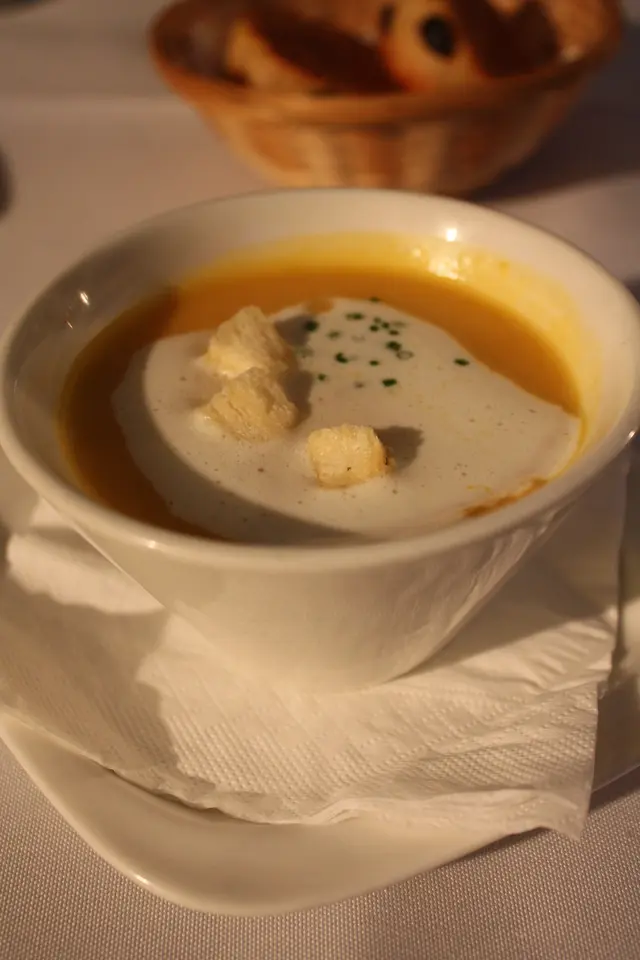 煙三文魚南瓜濃湯配香草脆包粒