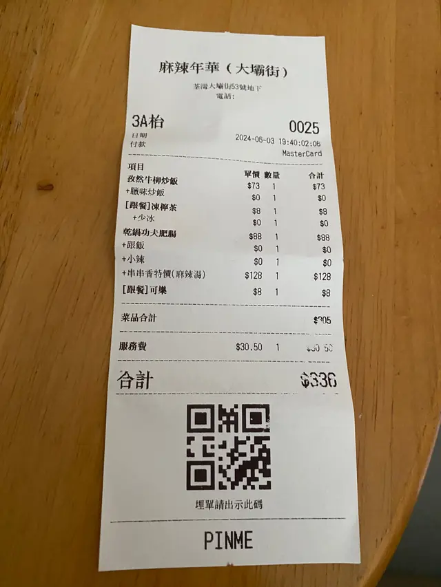 🤴🏻突然想食串燒🍢,食落又唔差!☺️☺️ GilTamLevel 42024-06-06156 views Follow 同🤴🏻諗住喺大壩街覓食,🤴🏻忽然話想食串燒🍢就去‘麻辣年華 ’ 望望先!😉😉~~~孜然牛柳炒飯配臘腸飯~~~個飯好香臘腸味,牛柳好多同好厚係可惜乾左少少🤏🏻🤏🏻,好香孜然味😋😋1~~~功夫肥腸碎鍋~~~肥腸好乾淨最緊要冇怪味,又滑又彈牙份量都幾多👍🏻👍🏻,當中嘅青椒仲好好食添☺️☺️~~~串串鍋~~~有45串我哋就冇數喇,當中配料有平有貴,粟米🌽粒有兩三串攝牙罅🥲🥲,細個手指尾嘅香腸就好好味😊😊,貴嘅居然有鮑魚真係估佢唔到😝😝,當中款式有8至10款,辣湯好香口惹味😚😚~~~凍檸茶~~~雖然大杯,但完全唔好飲,好似冇落糖水咁!😳😳The above review is the personal opinion of a user which does not represent OpenRice's point of view.2Share🤴🏻突然想食串燒🍢,食落又唔差!☺️☺️ 麻辣年華 (大壩街) https://s.openrice.com/QrKT0zNYfW0Report Post Ratings3Taste3Decor3Service3Hygiene3ValueDate of Visit2024-06-03Dining MethodDine InSpending Per Head$168 (Dinner)