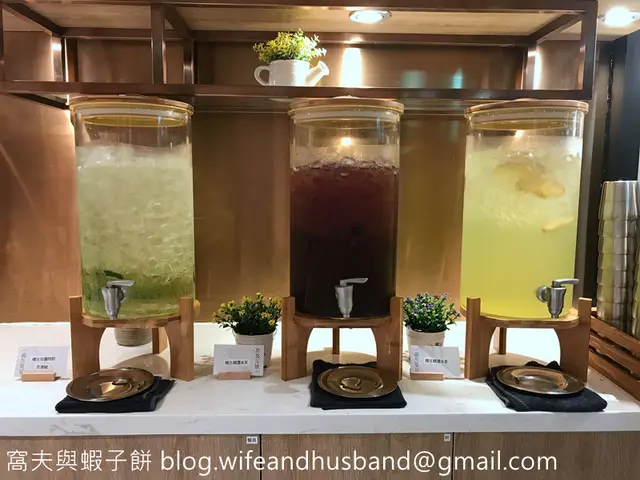 自助飲品區有三個選擇,其中一款是有酒精的,窩夫與蝦子餅較喜歡無酒精的提子味特飲。