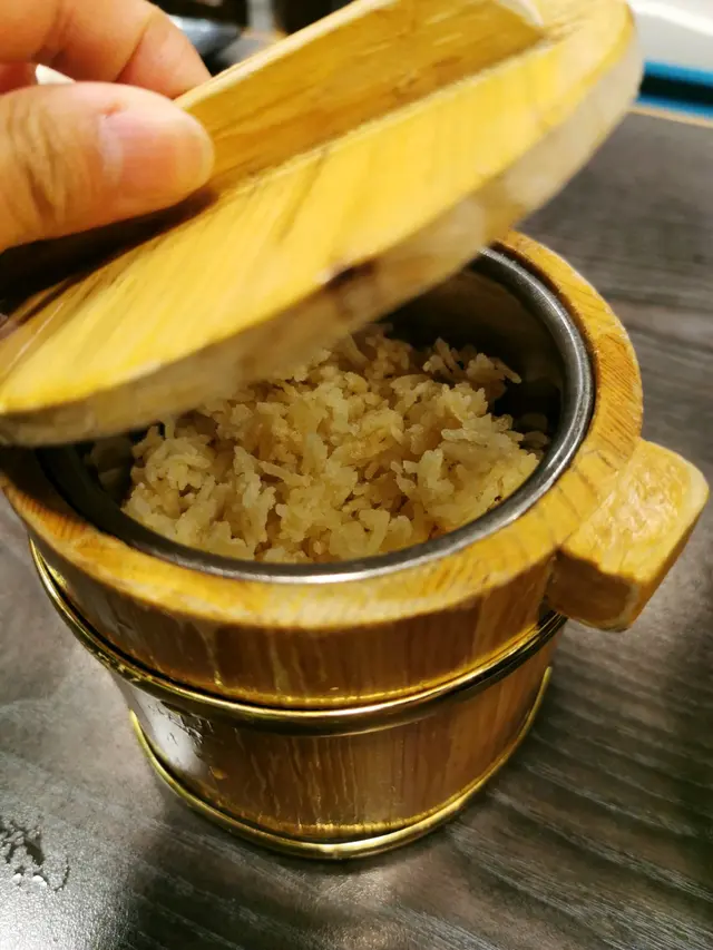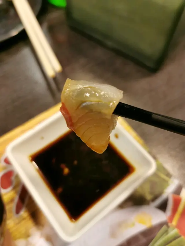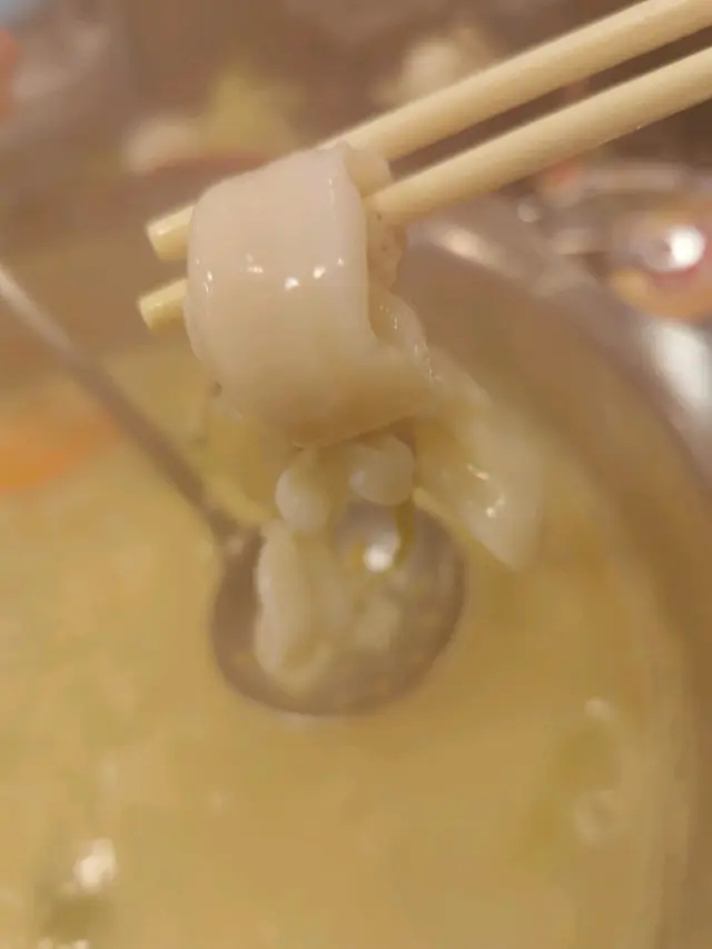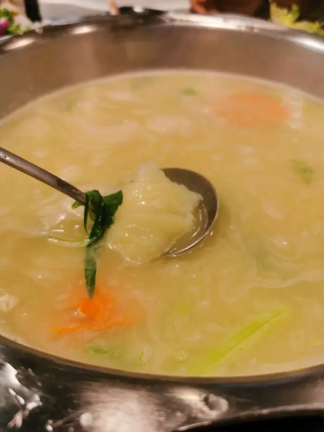 刺身,魚尾仲有少少旭緊😲,食洛真係超新鮮同有咬口。相信刀工都有番甘上下。另外,我地點左花膠鯊魚骨膠原鍋,尼個鍋都有驚喜,佢會付送甘香泡飯,湯底本身有除左花膠,入面仲有好多鯊魚骨,所以真係好有膠質,要keep住一陣陣去搞一搞個湯底,防燶底,