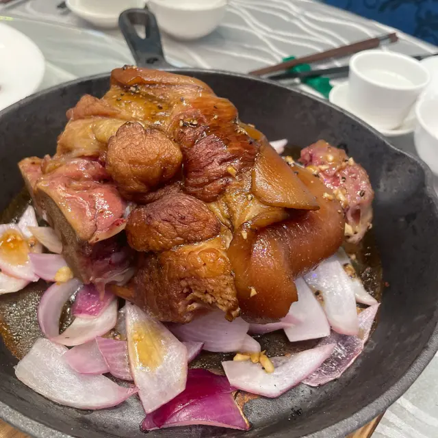 呢個一上枱就贏晒氣勢!🔥 鐵板「滋滋」聲咁上枱,黑椒嘅香氣即刻湧出嚟,勁開胃。成隻豬手份量超足,啲肉炆到好腍,用筷子輕輕一夾就骨肉分離。滿滿嘅骨膠原,口感又軟又糯,黑椒汁非常濃郁,超級送飯!兩個人食呢碟,真係有啲滿足過頭,絕對係食肉獸嘅恩物,抵食之選!