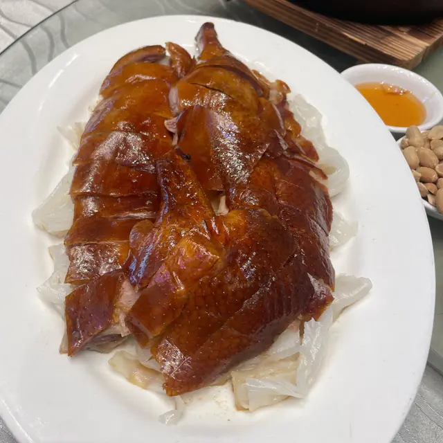 呢個燒鵝真係有料到!😍 塊皮燒到卜卜脆,一咬落去「咔」一聲,鵝肉肉汁豐富,仲帶有淡淡嘅遠年陳皮甘香,完全唔膩。最最最重點係墊底嘅陳村粉!佢吸晒啲燒鵝油同精華醬汁,滑捋捋又超惹味,撈埋一齊食,飽肚感十足,基本上當咗半個主食,性價比即刻拉高晒!呢道菜絕對體現到「大件」嘅精神。