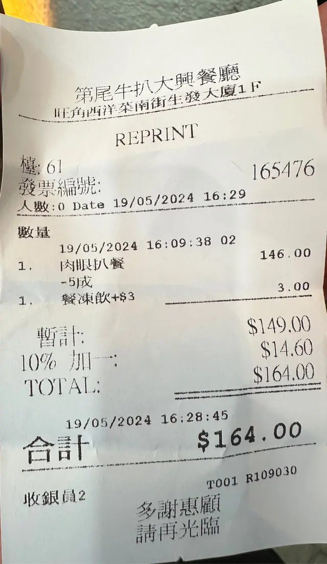 總結:呢間舖叫第尾牛扒都幾誠實,甚至乎可以形容係「謙虛」。第一次黎試,劣食!以後唔會再嚟,可一不可再!