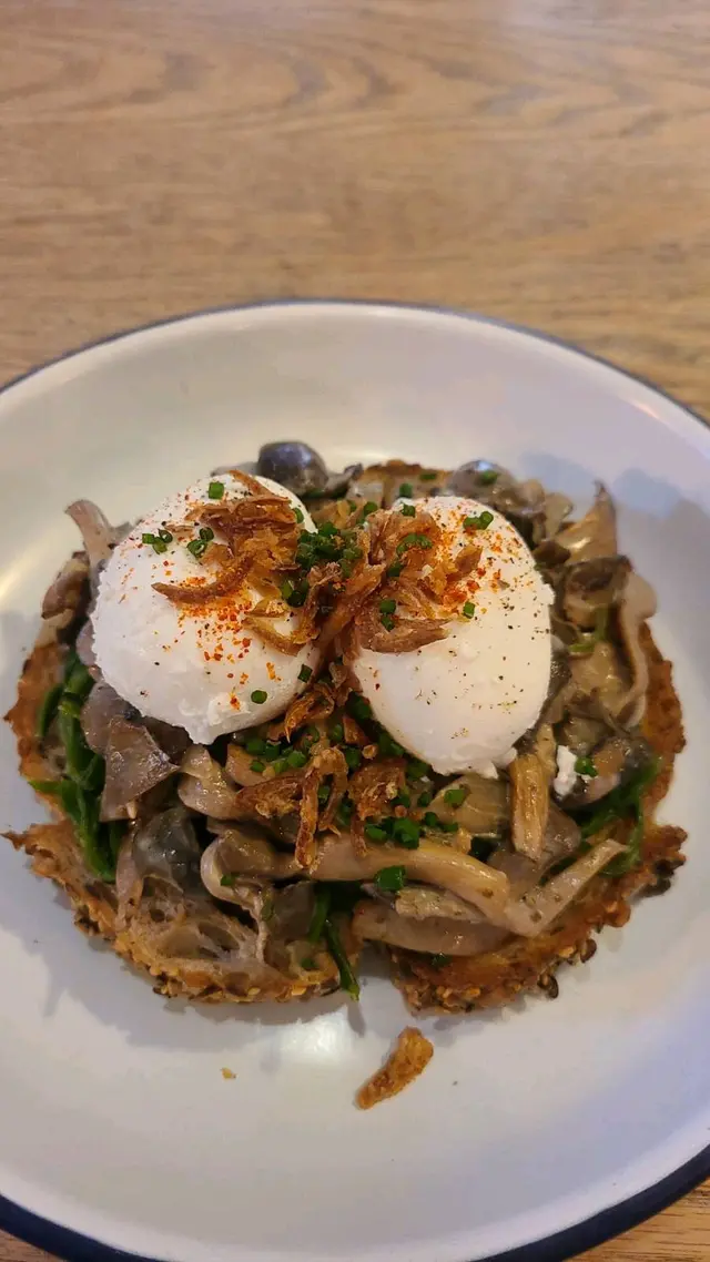 剛巧在灣仔辦事,就順路去拜訪堂食,外賣曾幫襯無數次!好幸運去到不用排隊,環境頗舒適,我一人被安排坐高凳,但都Ok嘅!看餐牌都幾多選擇,我選擇了無咁heavy磨菇蛋,幾好味!及一杯cappuccino!順道叫埋外賣🤭但我想提出一個要求,因為我見到有一客人截停了一個正在捧着個sandwich預備比客人,她好心聽了那客人order才走,並沒有考慮那坐客沒有帶口罩,向着她捧着那食物講話,好不衛生,同時距離好近,如果是給我,我一定不要!希望她們注意下,改善下!