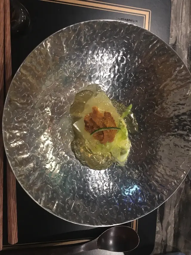第一道係海膽冬瓜昆布啫喱配桔皮條