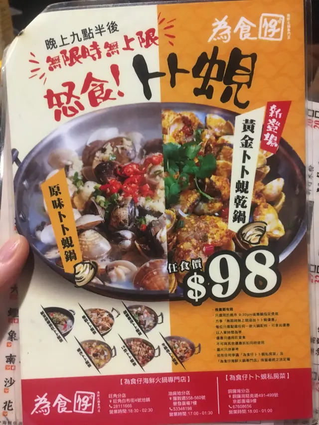 第一次食卜卜蜆 🥰 vanessako333Level 42019-09-24240 views Follow 朋友生日 一行四人去試吓食卜卜蜆 去開食海鮮最怕就係食殼多過肉 今次去食為食仔火鍋真係真材實料 先黎一個招牌卜卜蜆 叫左小辣 好足味!咁樣食法真係好新鮮 叫左小食黃金魚皮 脆卜卜 有小小咸蛋味自家製紫菜響鈴 呢個真係驚喜滿分 初頭冇留意以為只係一個普通嘅響鈴 食落好有驚喜 紫菜夾左係入邊安格斯肥牛 脂肪同肉嘅分布都好平均 唔算太肥 黑松露餃子又係另一個意外 可能係我自己好鍾意食黑松露 松露味好香 之後再叫多咗個鮮蝦雲吞手打四寶丸 雜菜拼盤 其實總括嚟講 餐廳食物好新鮮 而且有創意 不能不提嘅係 其實店長好窩心 佢係每張凳下面都放咗個籃仔俾人擺嘢窩心籃招牌卜卜蜆頂級安格斯肥牛手打四寶丸雜菜拼盤鮮蝦雲吞自家製紫菜炸響鈴自家製紫菜炸響鈴The above review is the personal opinion of a user which does not represent OpenRice's point of view.LikeShare第一次食卜卜蜆 🥰 為食仔海鮮火鍋專門店 https://s.openrice.com/QrKT0XoKs00Report Post Ratings5Taste4Decor5Service4Hygiene4ValueRecommended Dishes招牌卜卜蜆頂級安格斯肥牛手打四寶丸雜菜拼盤鮮蝦雲吞自家製紫菜炸響鈴Date of Visit2019-09-16Dining MethodDine InType of MealDinner