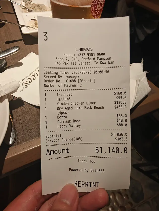 第一次食地中海菜❤️ BeansphereLevel 32025-09-05199 views Follow 朋友仔住喺對面樓,佢話成日經過呢間地中海菜出面都排曬隊。咁佢就想自己都試下,帶埋我去食。去到真係要排隊🤣🤣🤣好彩出面有部電視睇下,原來之前個老板有上過電視節目。同埋佢出面都有d位,見到有d人可以帶寵物黎食都幾好👍👍👍首先我哋叫咗個鐵板煎著名中東鹹香芝士。作為starter非常香口開胃👍之後再叫咗個TRIO DIPS PLATTER, 呢個超有得色,個彼得包可以打開,好似一個袋仔咁裝住d醬食👍👍👍最大驚喜係個羊架。佢煎到岩岩好脆邊,但d肉又juicy, 加埋d羊脂肪。即時上腦🤤🤤🤤[IMG:2][IMG:4][IMG:2]The above review is the personal opinion of a user which does not represent OpenRice's point of view.LikeShare第一次食地中海菜❤️ Lamees https://s.openrice.com/QrKT0OqbU00Report Post Ratings5Taste5Decor5Service5Hygiene5ValueDining MethodDine In