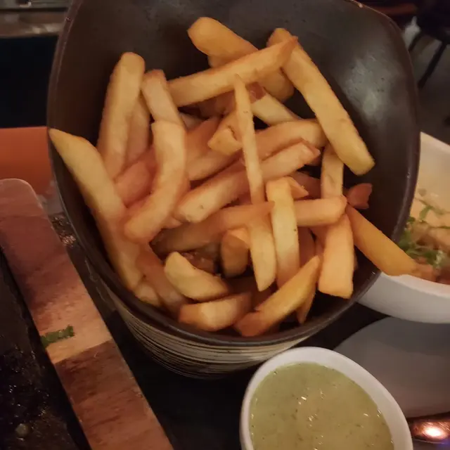 牛油果醬薯條Chips & Guacemole,這個薯條有少少特別,因為我地order時,職員說這不是薯條,只是中文譯名錯了,其實是玉米片。但可加$20轉為薯條。原本$58,而家變成$78。薯條好脆。不過牛油果醬太希了。有少少失望。