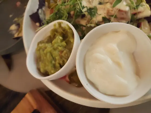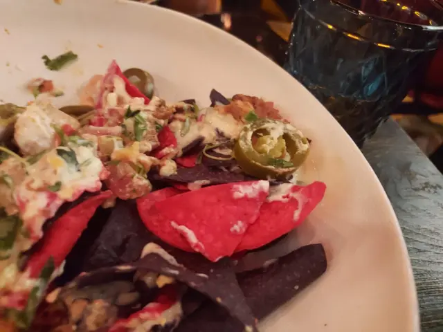 水牛城雞肉香,分別有紅色及黑色墨西哥玉米片,玉米片鋪滿醬汁。醬汁是用上香濃芝士,酸瓜。味道非常美味。還配上牛油果醬及酸奶醬。非常配搭。