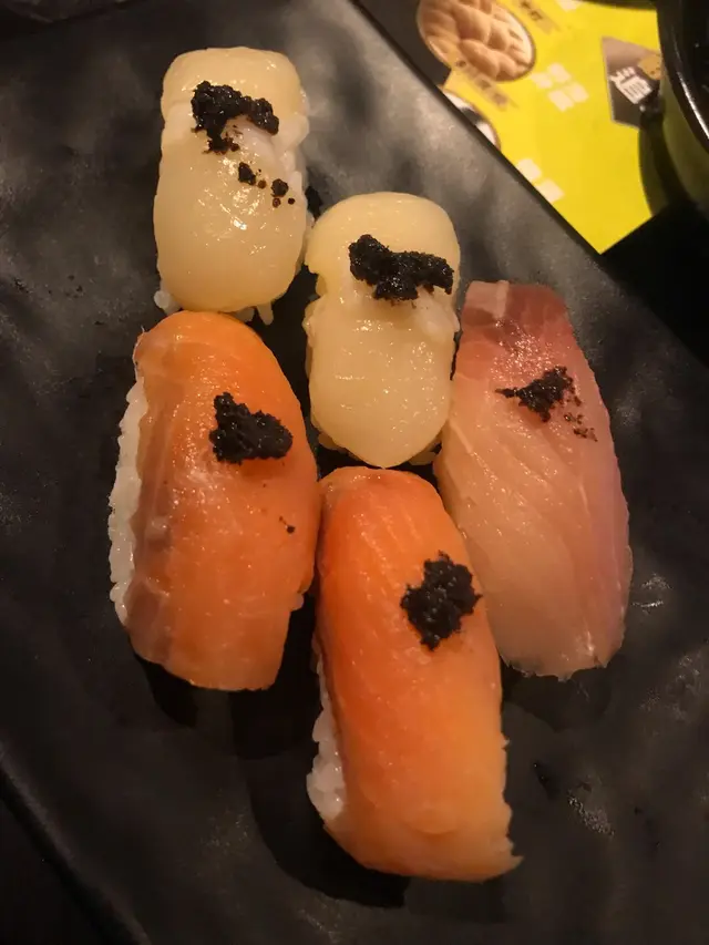 之後就到壽司。咁梗係試左我最中意嘅黑松露壽司。黑松露帶子好食!厚身又彈牙!而油甘魚ok 如果再肥美d就更好!