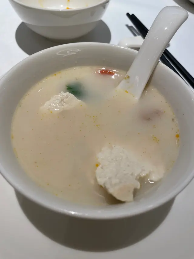 見到OpenRice評價好多人都叫左黃花魚湯,於是跟風叫,魚湯奶白色加上有豆腐同芋頭,見識少第一次見到加芋頭落湯覺得有少少奇怪,湯身係比較杰身嘅,可能就係同加左芋頭有關?豆腐冇味道,湯渣內嘅黃花魚會𢳂返出黎,聞到好重嘅燶味,應該係烤/煎過但係味道認真唔討好