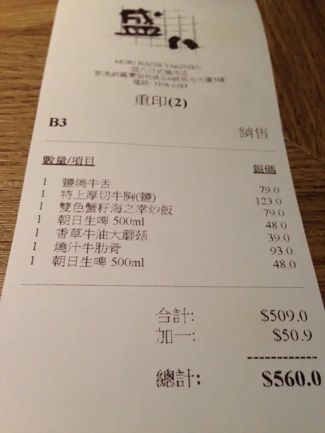 總共叫左六樣野食同飲品,包括鹽燒牛舌($79)