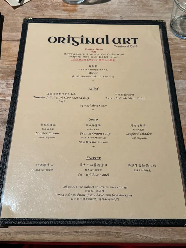 晚市二人套餐$728起,有麵包籃、沙律、餐湯、前菜、意粉、主菜及餐飲,非常豐富🫃🏽另外亦有單點菜單