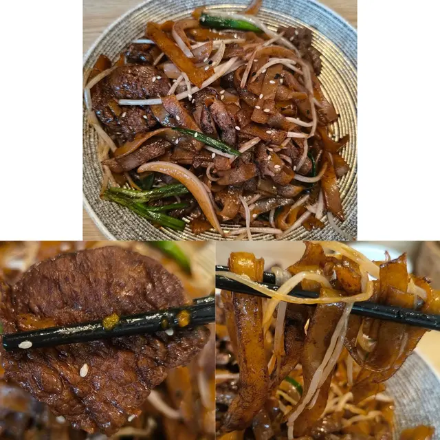 呢碟乾炒牛河份量算多,牛肉好嫩,河粉就油咗少少,其他配料有芽菜、韭黃同洋蔥等!