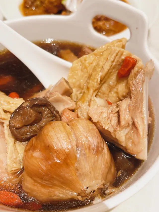 一放上枱已經聞到好香藥材味,飲落去好濃郁!肉排大約4件,炆到好淋,啖啖肉之餘,內有一整舊大蒜,腐竹,可選擇油飯或白飯