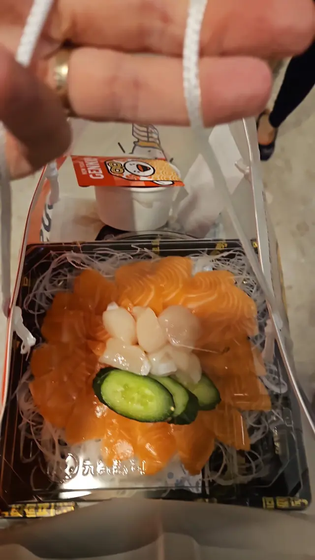 刺身啦,今次我就叫咗外賣自取,三文魚拼帆立貝,首先份量都算幾多,食開都覺得新鮮肥美,一家四口份量啱啱好,三文魚刀功唔錯,唔會太厚亦唔會太薄,厚度適中口感就自然會好,帆立貝每隻都非常大,食落都好有鮮甜味