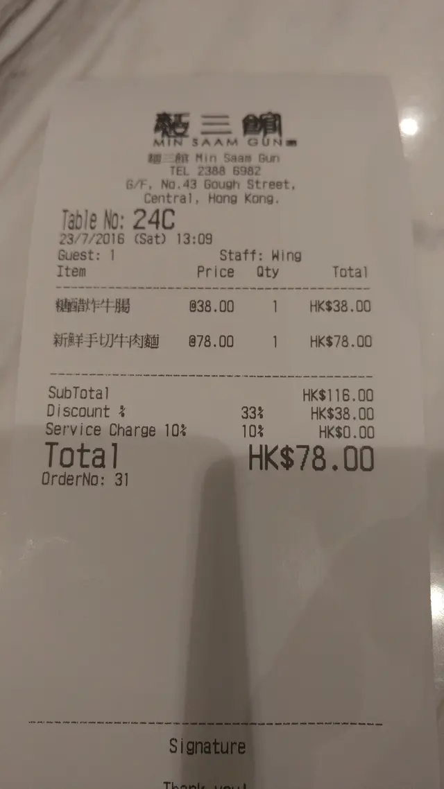 結帳的價格有點吃驚, 沒有10%服務費外, 折扣後的價格只是$78, 比市面上的90%日本拉麵要便宜, 但豐盛程度則更多. 短時間內會再來光顧.