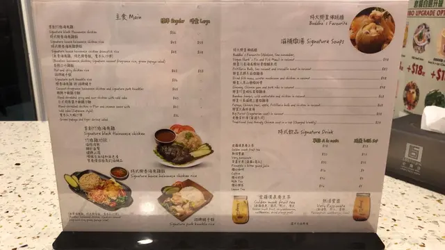 這裡特別之處是買了個主食後,可加$18要個「食療拿杯湯」,而且每周的款式都不同,還要是真材實料煲成的。再加$18還可以配小食,簡單得來都可以食得豐富。