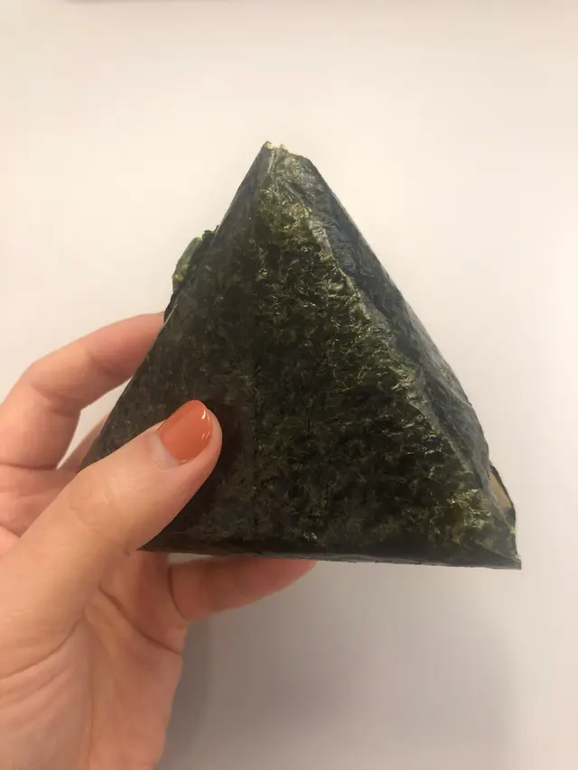按照包裝所示的方法拆開,新鮮的紫菜就會包裹住整顆飯團