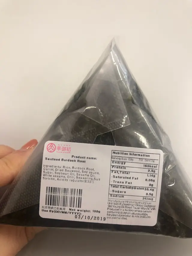 買了個素食的 金平牛蒡🍙 163卡 16HKD