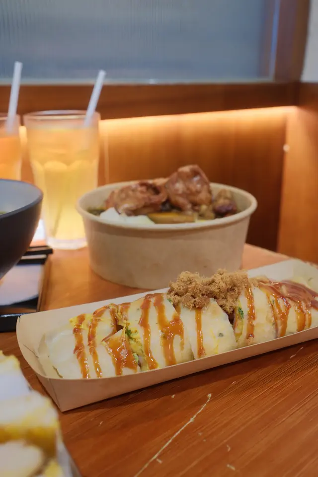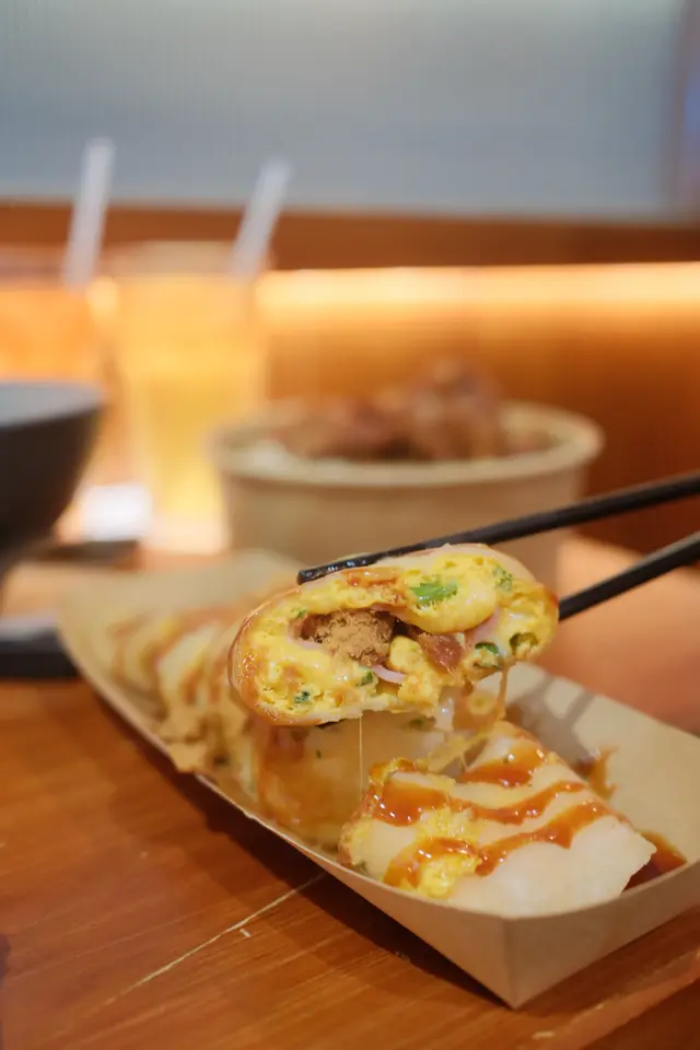 芝士火腿肉鬆蛋餅味道不俗。蛋餅外皮柔軟,內裡芝士拉絲,火腿增添鹹香,肉鬆帶來細膩口感,搭配甜醬汁,鹹甜交融,令人滿足!