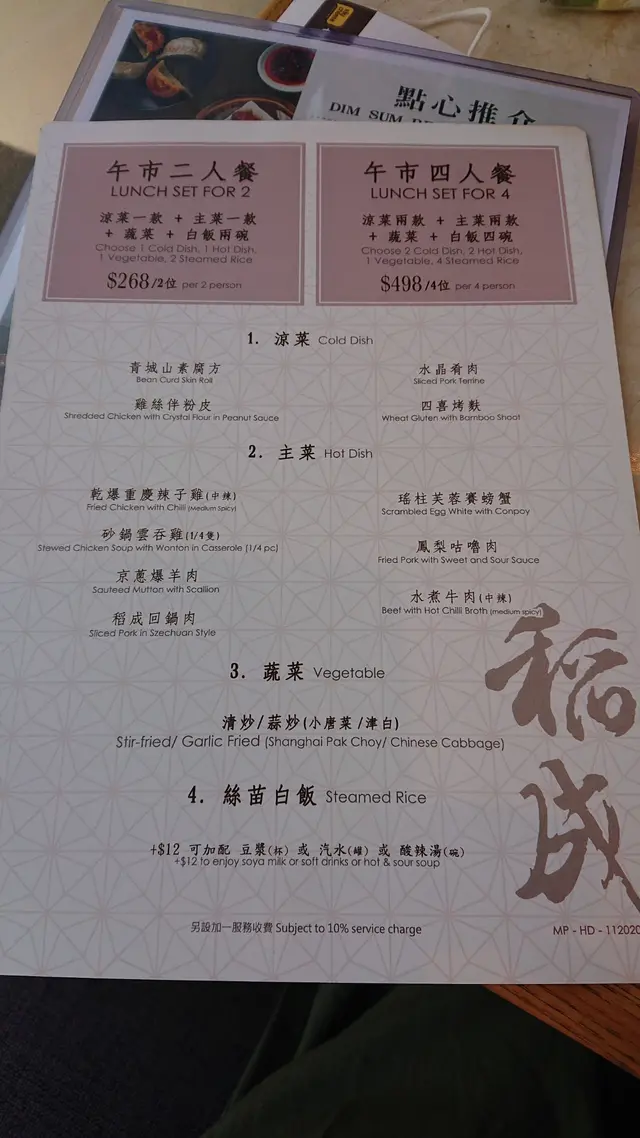 一行四人來到餐廳,待應安排了景觀開揚座位又舒適的位置給我們,今天與好友相聚主要是聊天為主,所以對吃什麼沒有特別講究。看見有午市四人套餐供應就點了,我喜歡吃小籠包也就點了一份。餐廳有茶提供,但沒有品種可選,只有鐵觀音,茶壺是用保溫的款式,但容量不多,我們四人沖一轉就要補充,幸好待應也很快為我們添加。有一碟前菜放檯上,是蒜泥青瓜和木耳,味道不錯,口感青爽。